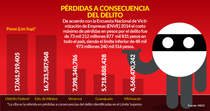 Las cifras de la Encuesta Nacional de Victimización y Percepción sobre Seguridad Pública (ENVIPE) 2015 y el estudio Ciudades Competitivas y Sustentables 2015 ponen a la Zona Metropolitana del Valle de México (ZMVM) y, en especial, al Distrito Federal y al Estado de México, como los de mayor riesgo en los estragos que genera el aumento de la inseguridad y la violencia, así como en el deterioro del Estado de Derecho.De acuerdo con el estudio Ciudades Competitivas y Sustentables 2015, la Zona Metropolitana del Valle de México (ZMVM) –específicamente el DF y las ciudades más importantes del Edomex– está en el primer lugar del indicador que mide las pérdidas por inseguridad, y en materia de Estado de Derecho ocupó los últimos lugares debido al alto porcentaje de personas que se sienten inseguras, con 76 por ciento de la población."La ZMVM presenta el mejor subíndice competitivo de Innovación y éste es su mayor fortaleza, pues presentó el mayor número de patentes solicitadas (9.5 por cada 100 mil PEA) y tuvo 290 posgrados registrados en el Programa Nacional de Posgrados de Calidad de Conacyt. No obstante lo anterior, en materia de Derecho ocupa el lugar 68 por la baja competencia notarial (3 notarios por cada 100 mil PEA –Personas Económicamente Activas–) y el alto porcentaje de personas que se sienten inseguras (76%)", plantea.